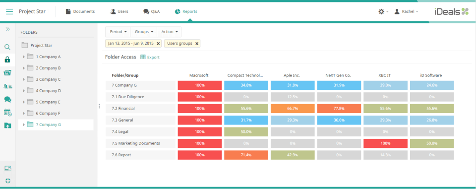 la virtual data room di Ideals è una soluzione sicura per la gestione di complessi processi di deal aziendale. Fornisce ai team esecutivi un portale online per collaborare, modificare e firmare i file. La piattaforma VDR Ideals offre sicurezza, conformità ed efficienza in un unico posto. Gli utenti Ideals lo amano perché sia gli utenti non IT che IT possono usarlo facilmente.